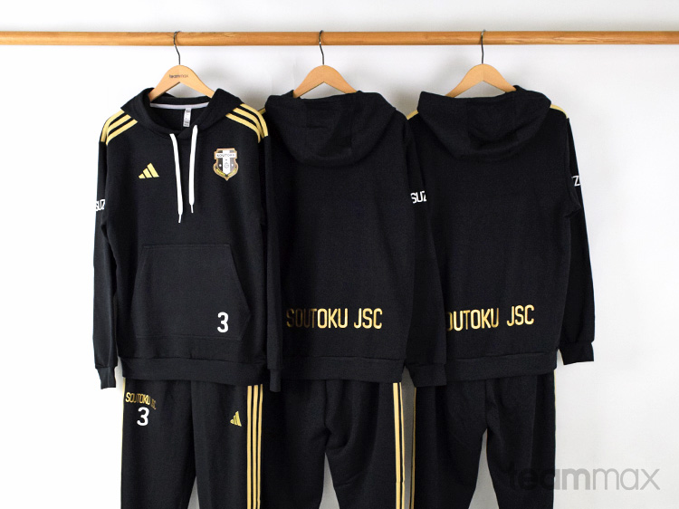 SOUTOKU JSC指導者用フーディーを作りました。 シュミレーターでデザインがやりやすく、見積から発注まですごく楽でした。 出来上がりも、イメージ画像通りカッコよくて大満足です♪